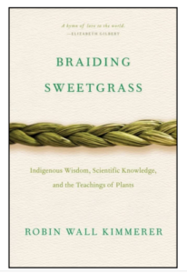 In the preface, Robin Wall Kimmerer writes: “I could hand you a braid of sweetgrass, as thick and shining as the plait that hung down my grandmother’s back. But it is not mine to give, nor yours to take. Wiingaashk belongs to herself. So I offer, in its place, a braid of stories meant to heal our relationship with